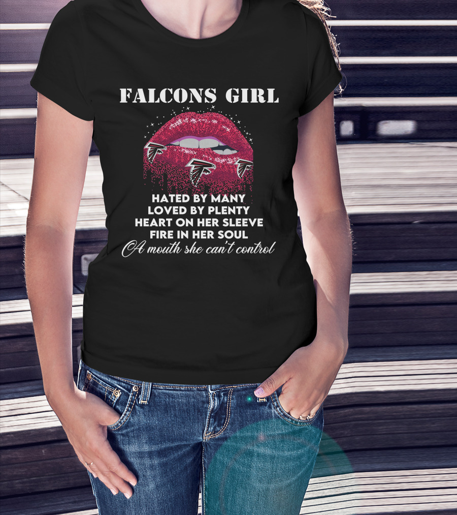 FALCONS GIRL Hated By Many Loved By Plenty Heart On Her Sleeve Fire In Her Soul A Mouth She Can't Control T-Shirt