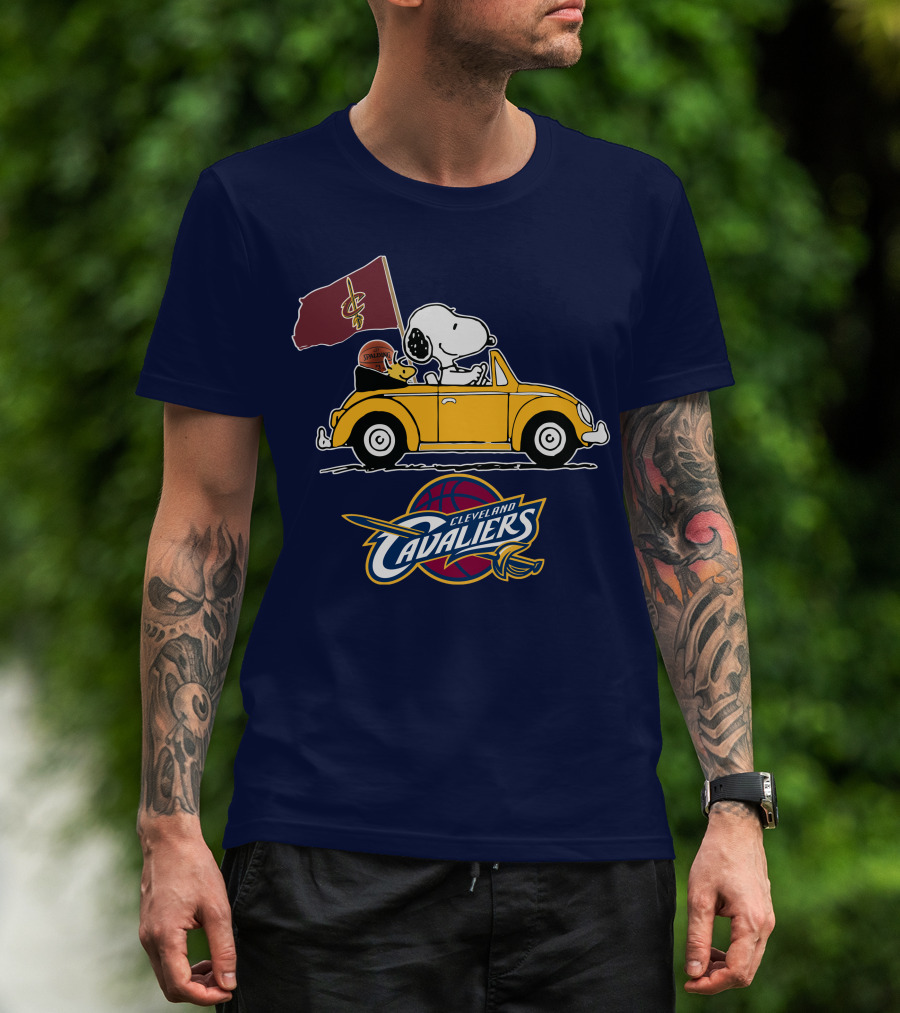 Cleveland Cavaliers Snoopy And Woodstock Driving With Basketball T-Shirt