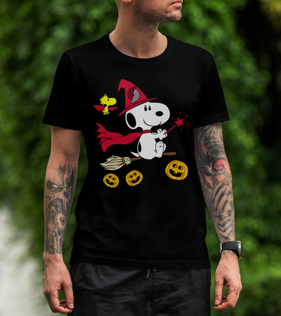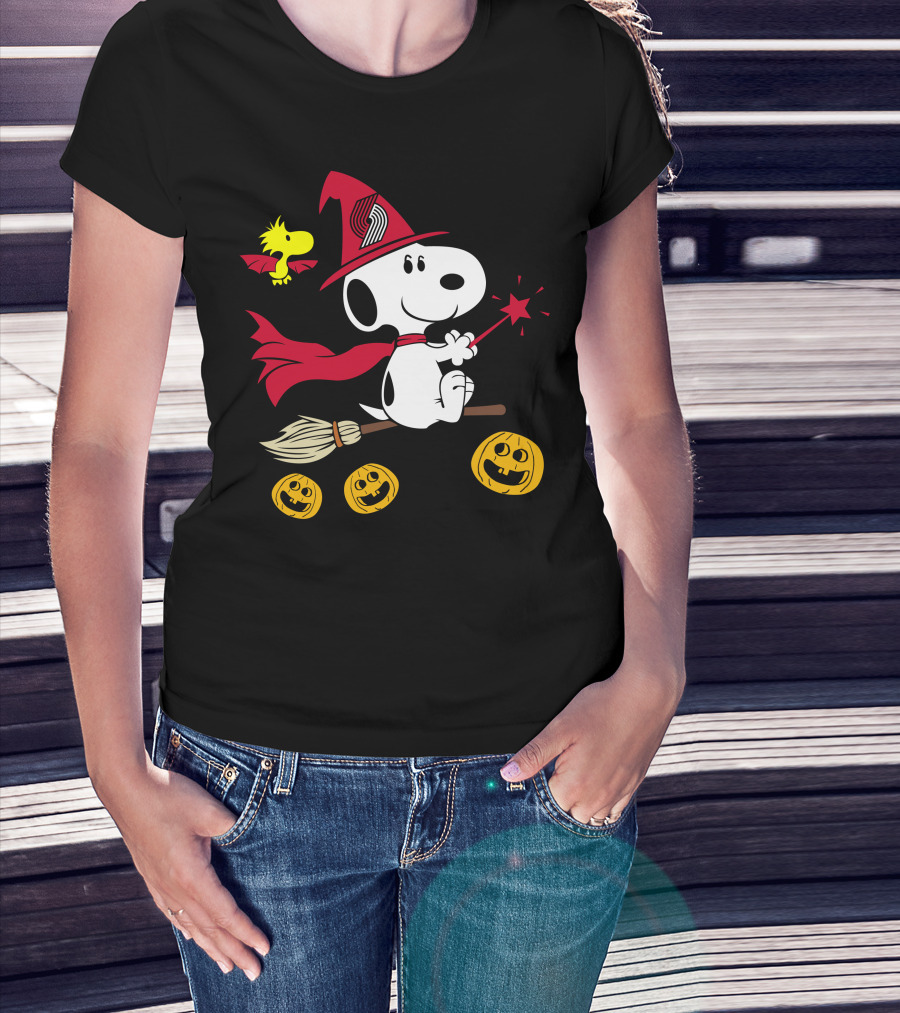 Portland Trail Blazers Happy Halloween Snoopy Witch Broom Woodstock Pumpkins T-Shirt