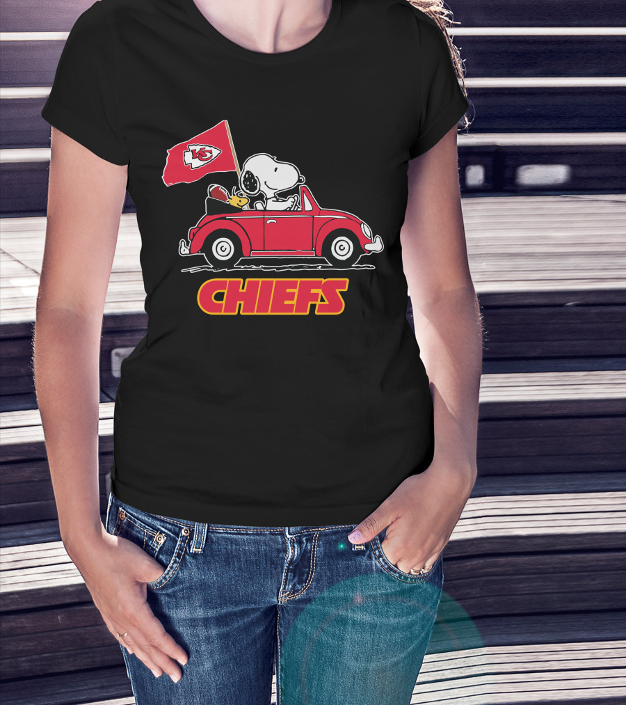 Kansas City Chiefs Snoopy Red Car Chiefs Flag T-Shirt