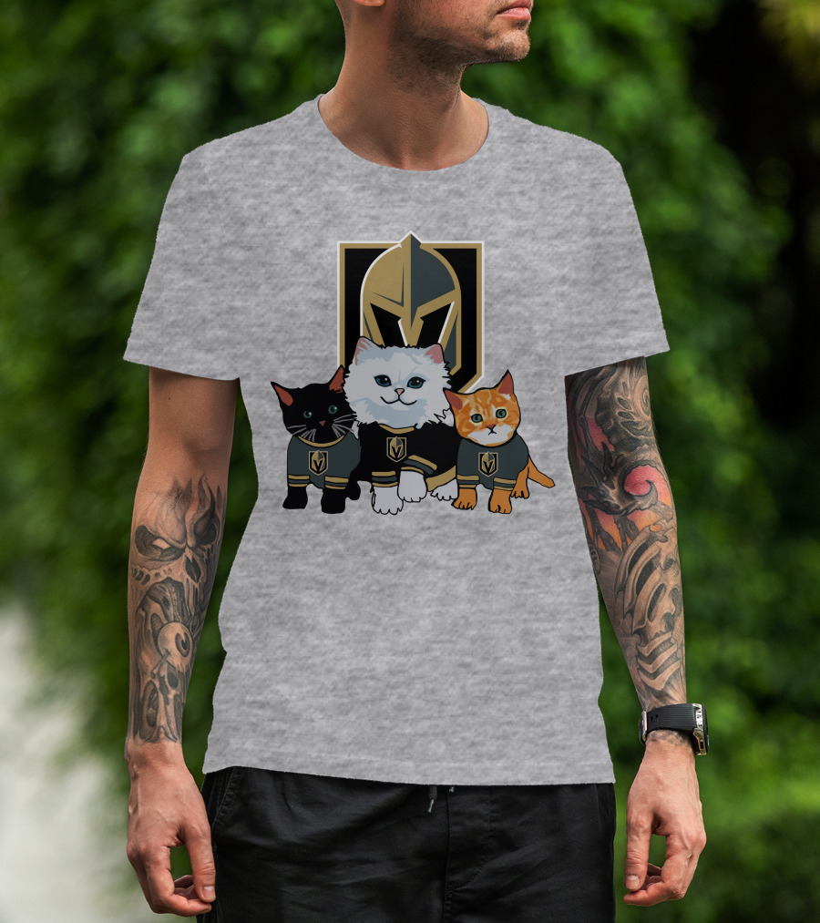 The Vegas Golden Knights Cats Team T-shirt is designed for everyday wear and a consistent fit. Fabric is pre-shrunk ring-spun cotton with durable stitching. See the size chart below for exact measurements.