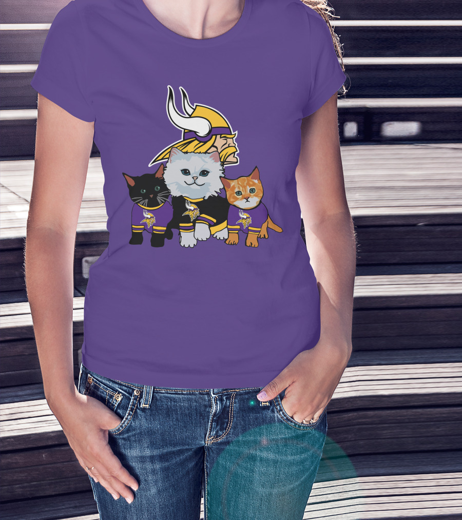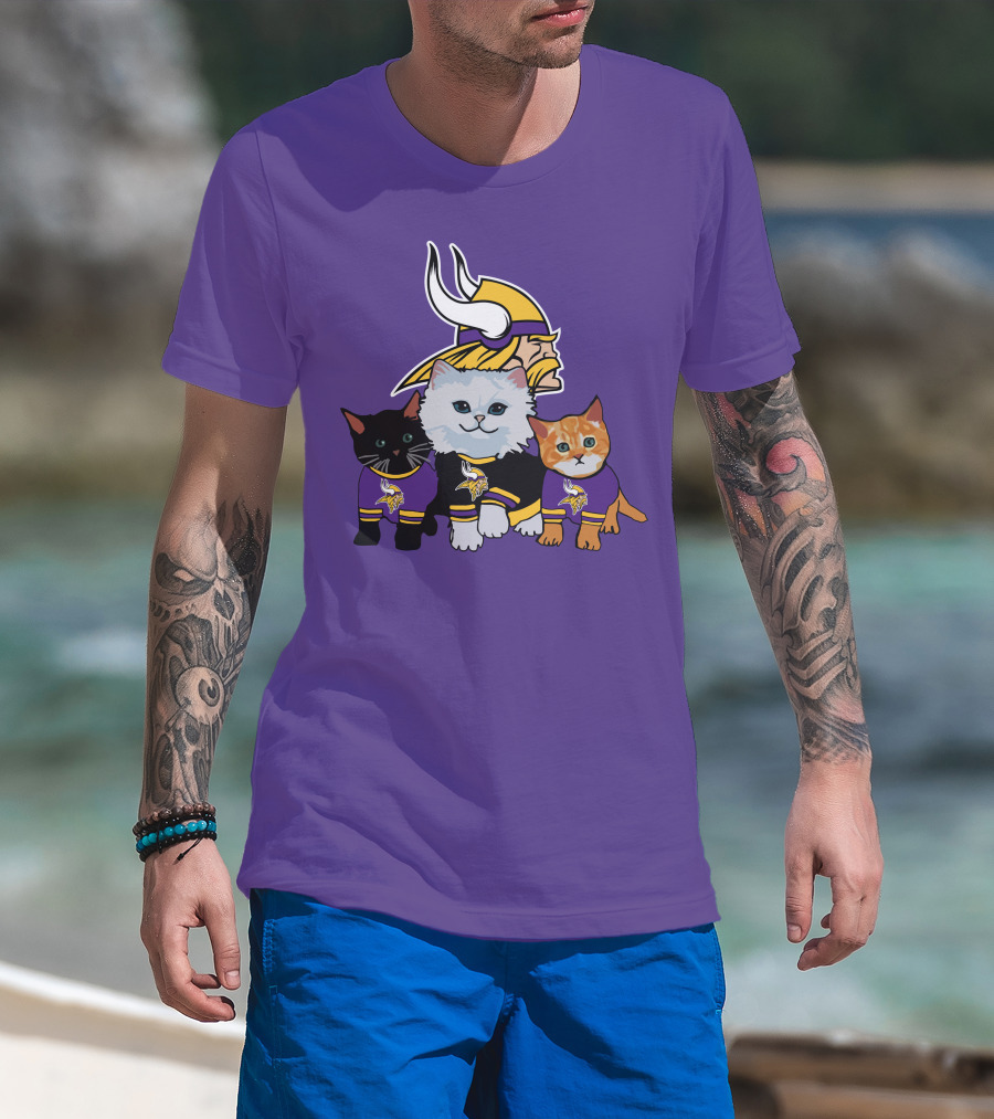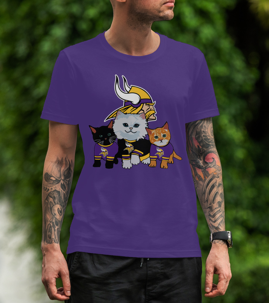 Minnesota Vikings Cats Wearing Team Jerseys With Viking Head T-Shirt