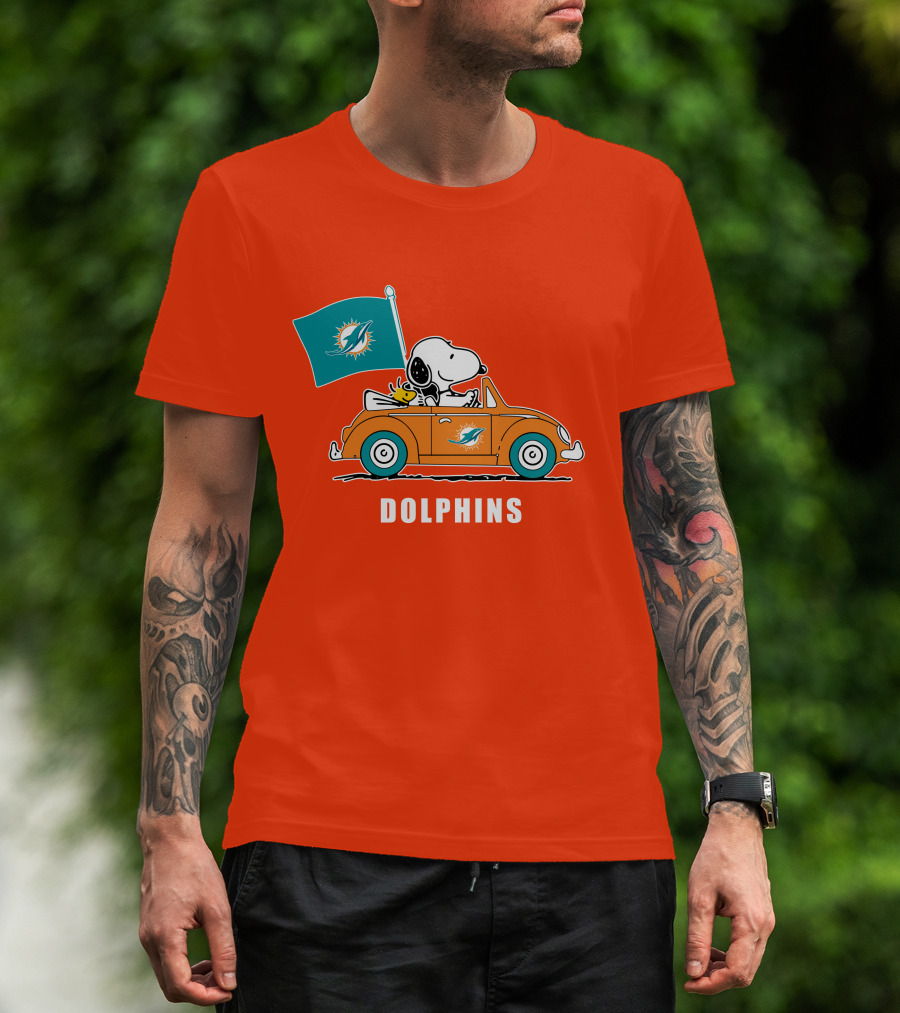 Miami Dolphins Snoopy Woodstock Driving Car Flag T-Shirt