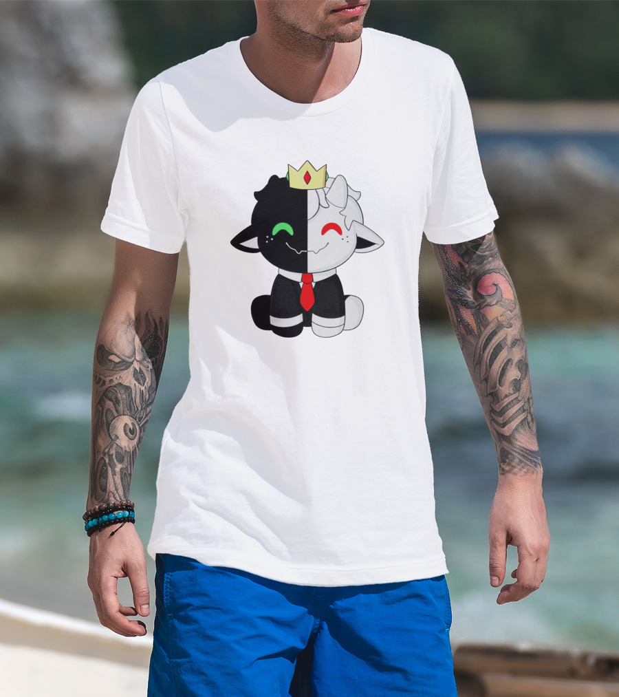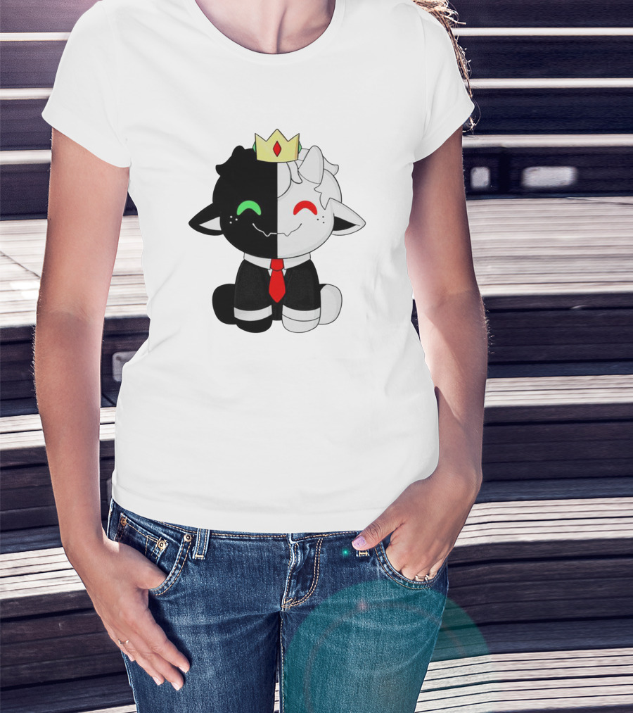 Ranboo Fashion Half Black Half White Crowned Character T-Shirt
