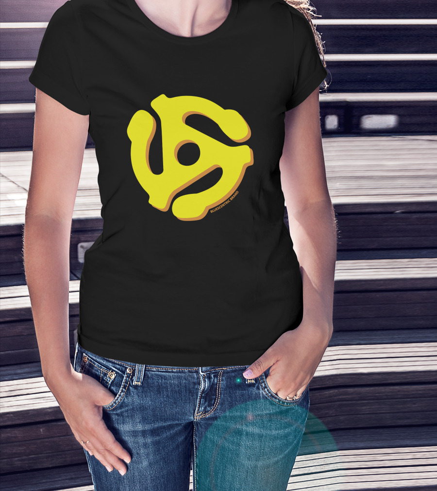 Bluescentric Brand Yellow 45 RPM Vinyl Record Adapter T-Shirt