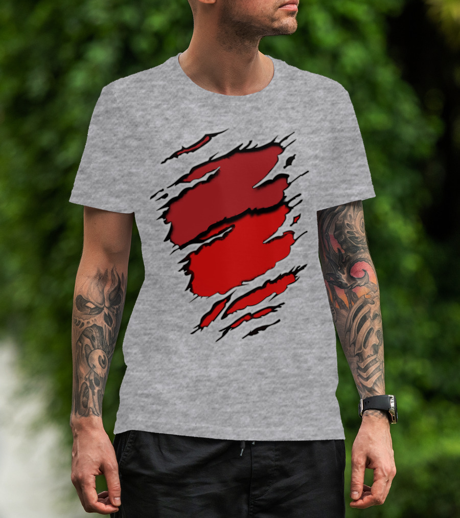 Chie-Car Red Ripped Claw Marks T-Shirt