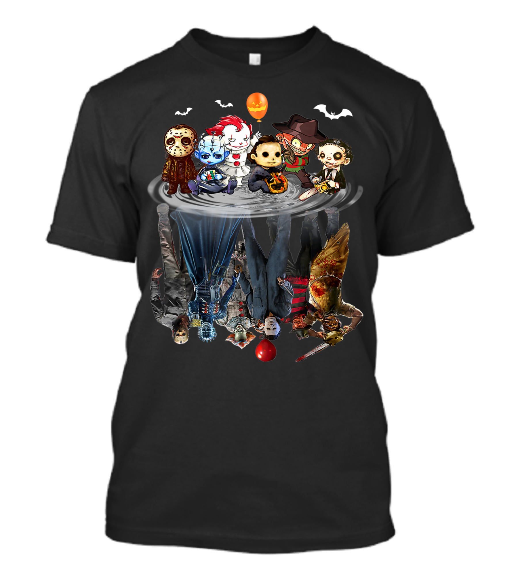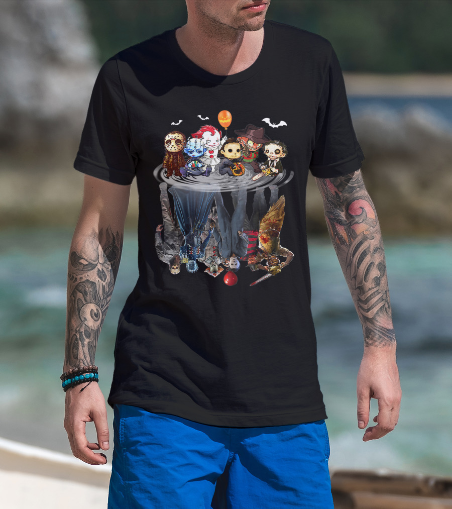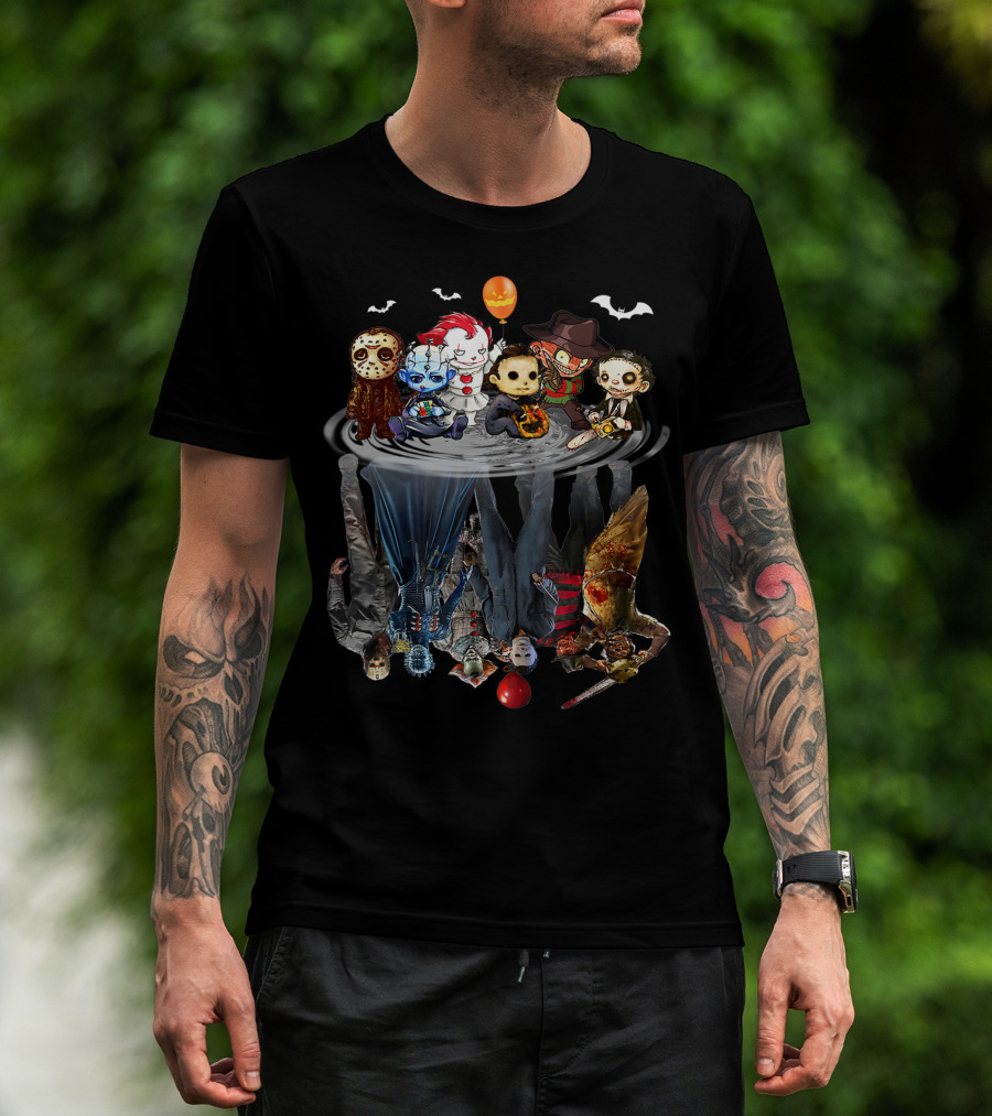 Chibi Character Water Reflection Horror Movie Icons Cute Creeps T-Shirt