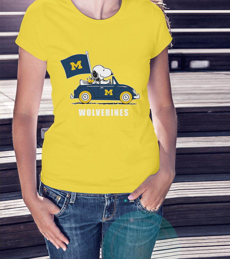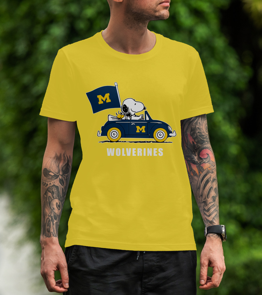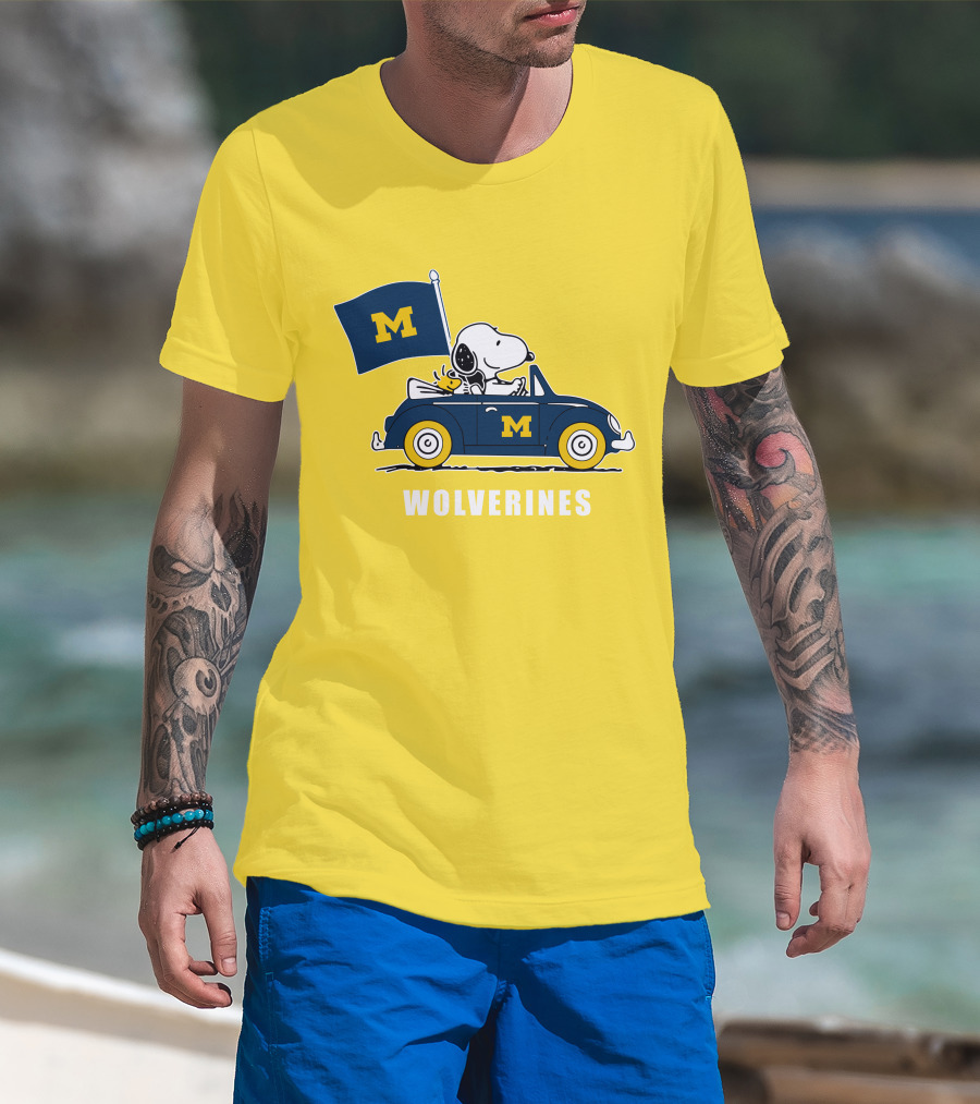 Michigan Wolverines Snoopy Driving With Flag T-Shirt