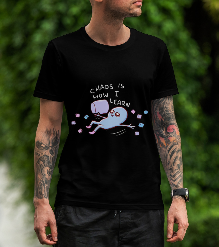 Chaos Is How I Learn Playful Blue Character Relaxing With Marshmallows T-Shirt