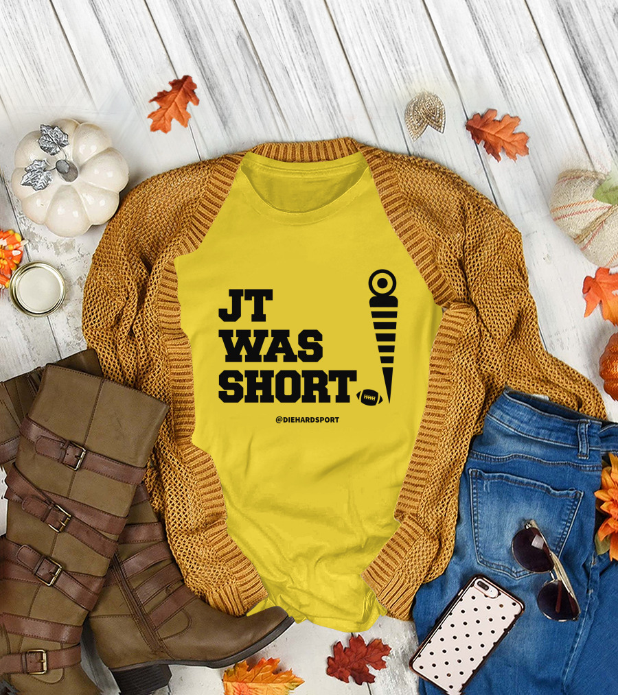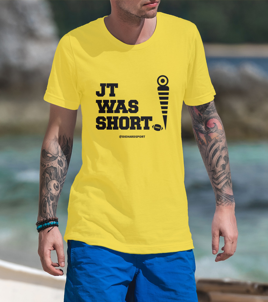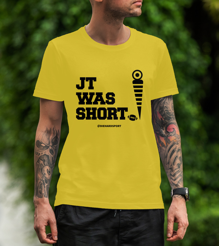 The JT Was Short @DiehardSport Football Marker T-shirt is designed for everyday wear and a consistent fit. Fabric is pre-shrunk ring-spun cotton with durable stitching. See the size chart below for exact measurements.