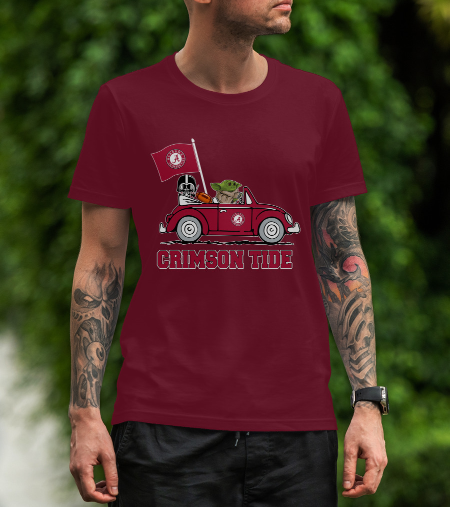 Alabama Crimson Tide Darth Vader Baby Yoda Car Riding Star Wars Football T-Shirt