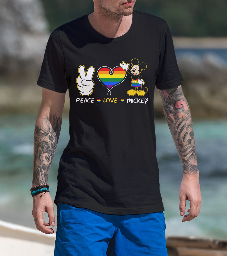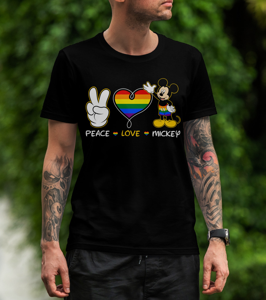 PEACE LOVE MICKEY Rainbow Pride T-Shirt