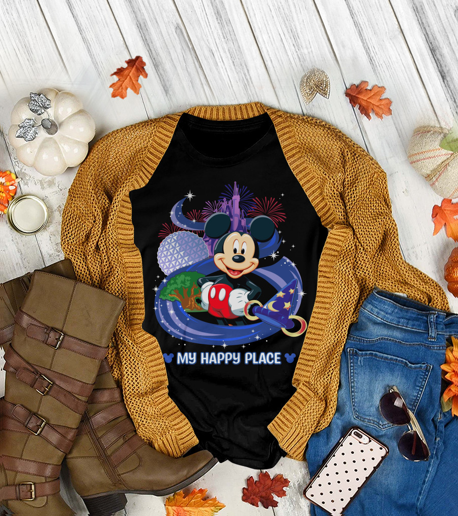 Mickey My Happy Place Disney Castle Fireworks Sorcerer's Hat T-Shirt