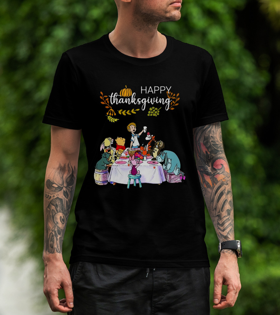 Winnie The Pooh Happy Thanksgiving Celebration With Friends At Dining Table T-Shirt