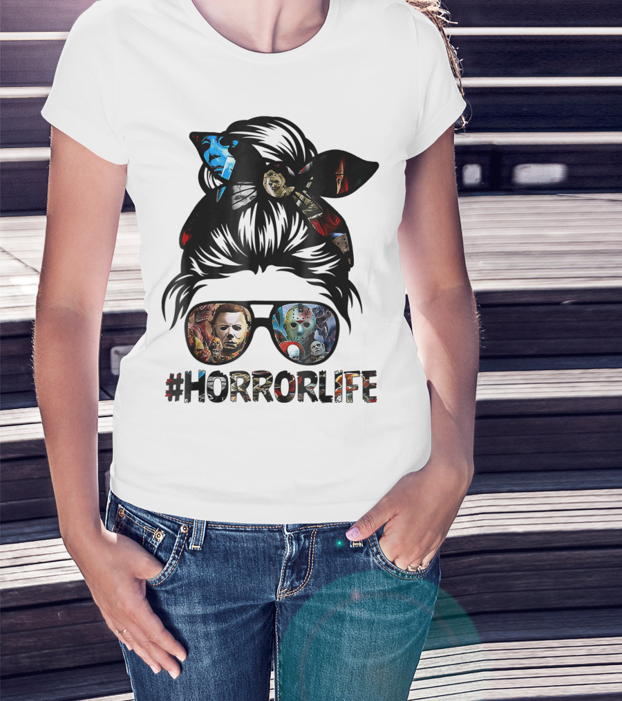 Horror Life Girl With Iconic Halloween Movie Characters T-Shirt