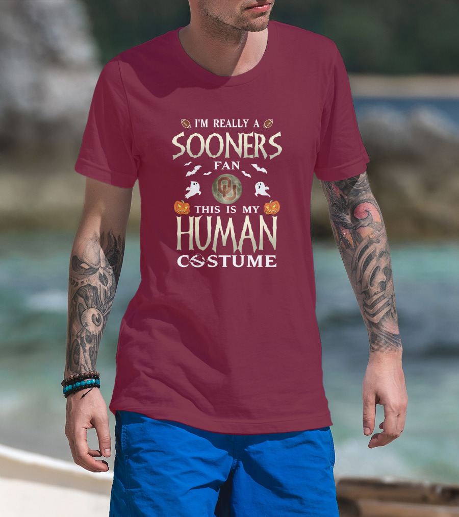 I'm Really A Sooners Fan This Is My Human Costume Halloween Football Oklahoma T-Shirt