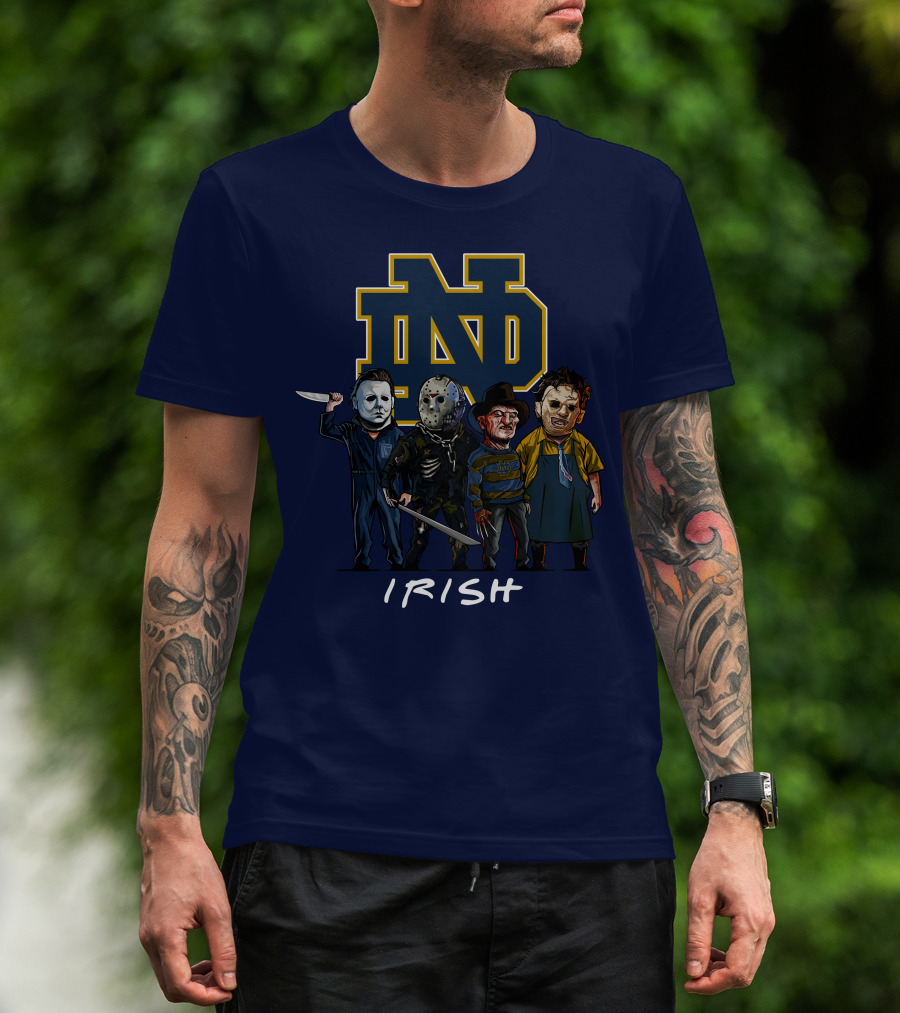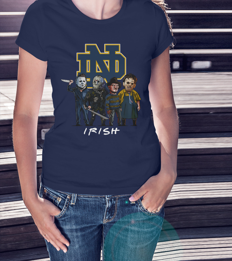 Notre Dame Fighting Irish Halloween With Famous Horror Slasher Characters T-Shirt