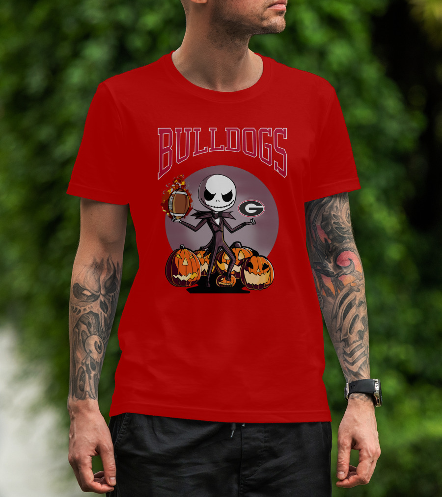 Georgia Bulldogs Jack Skellington Pumpkin Football Halloween T-Shirt