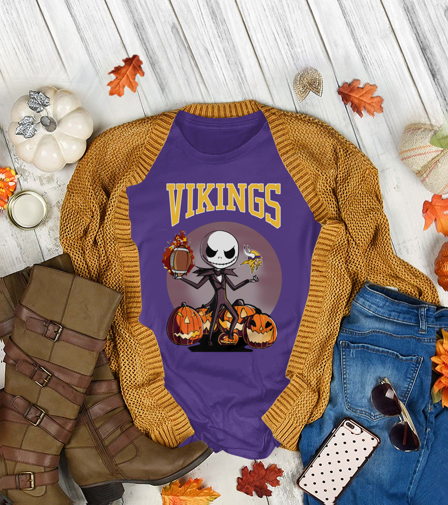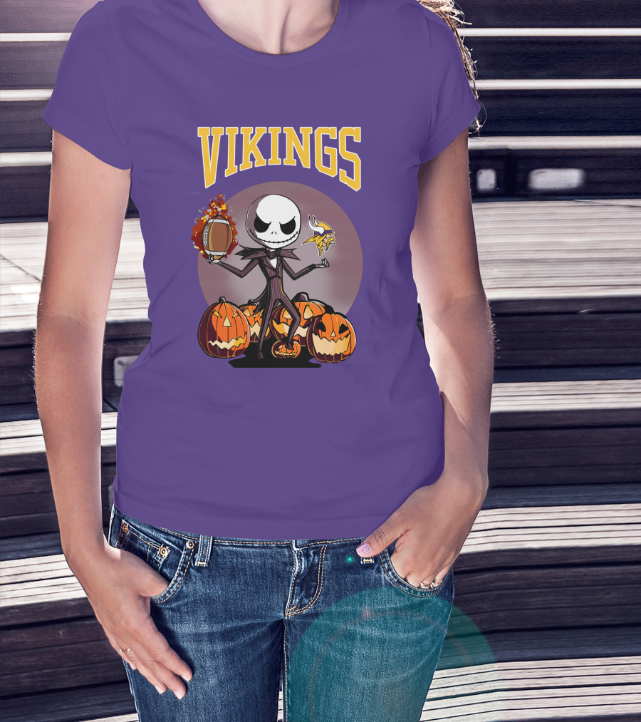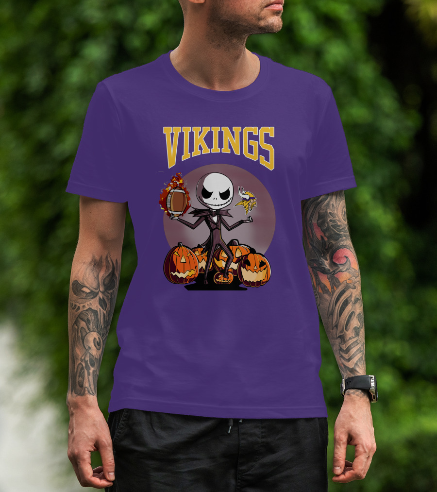 Vikings Jack Skellington Halloween Football Pumpkins T-Shirt