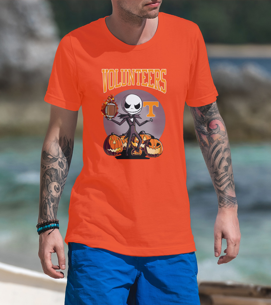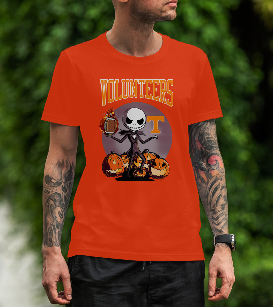Tennessee Volunteers Jack Skellington Halloween Football Pumpkins T-Shirt