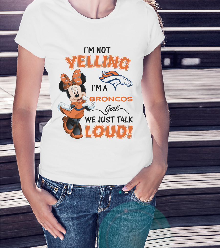 I'm Not Yelling I'm A Broncos Girl We Just Talk Loud Denver Broncos Minnie Mouse T-Shirt