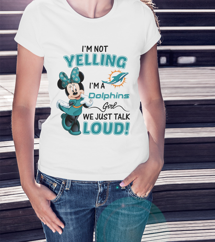 I'm Not Yelling I'm A Dolphins Girl We Just Talk Loud Minnie Mouse Miami Dolphins T-Shirt