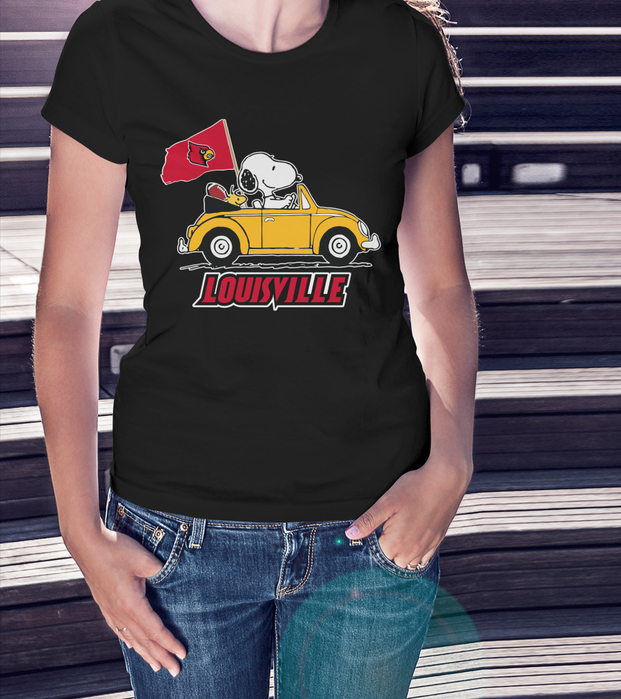 Louisville Snoopy Car Ride With Cardinals Flag T-Shirt
