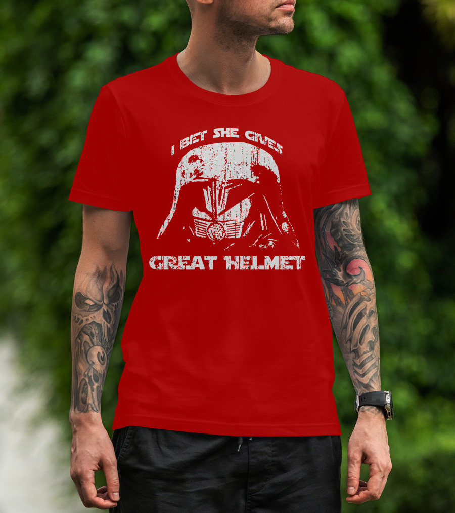 I Bet She Gives Great Helmet Darth Vader Style Helmet T-Shirt