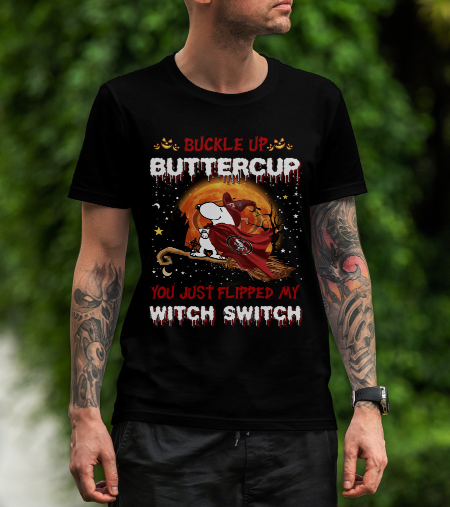 Buckle Up Buttercup San Francisco 49ers Snoopy Witch Switch Halloween T-Shirt