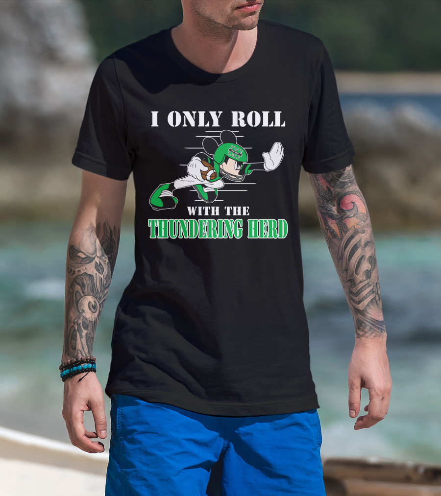 I Only Roll With The Thundering Herd Marshall M Football Player Cartoon T-Shirt