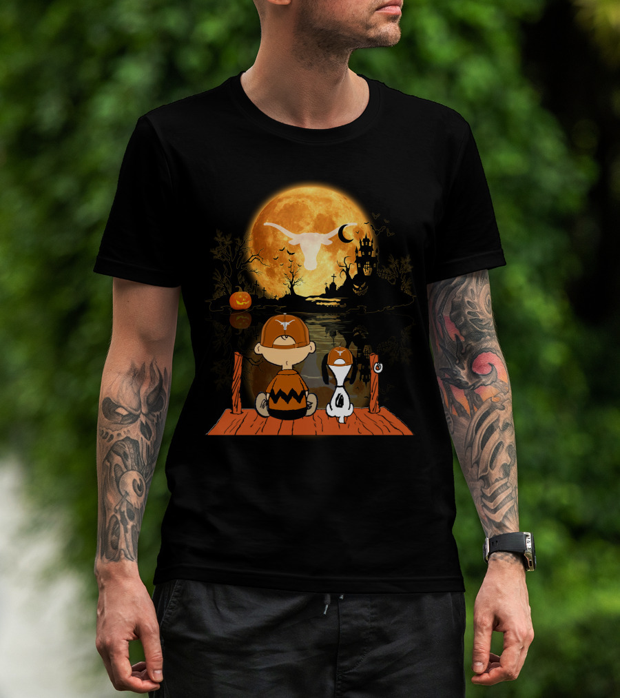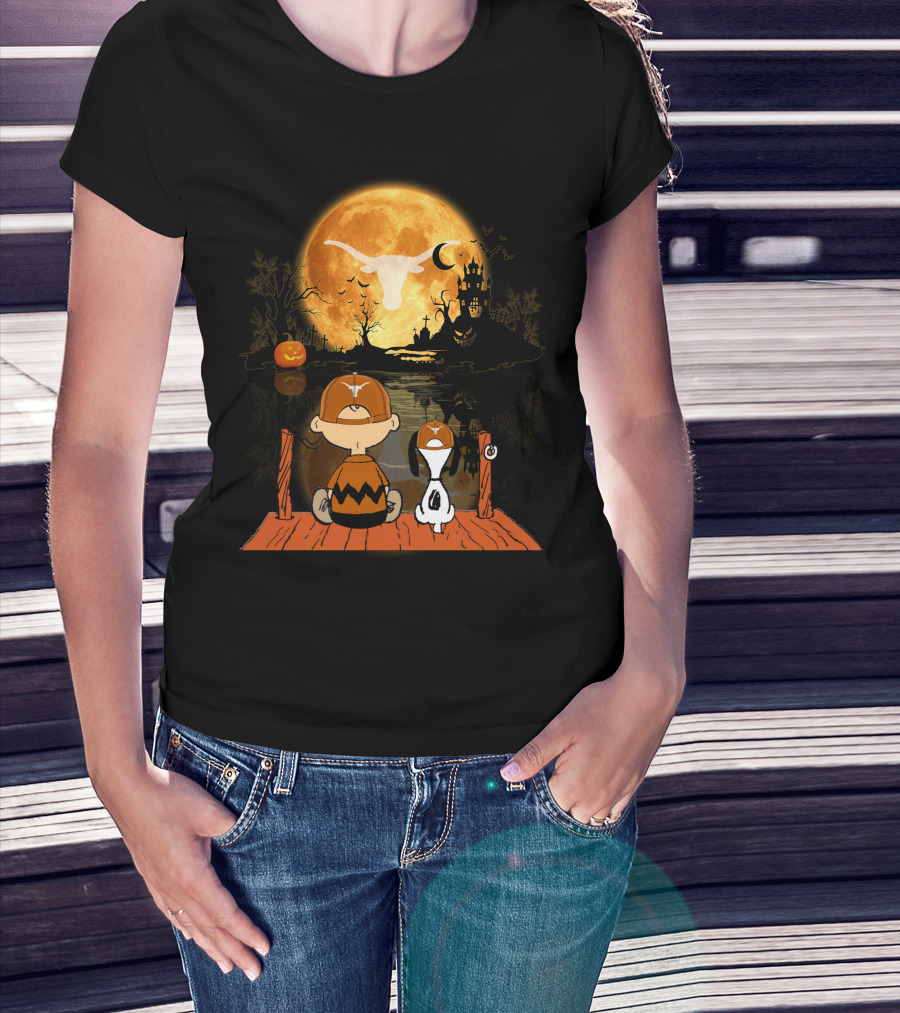 Texas Longhorns Halloween Charlie Brown Snoopy Full Moon Haunted Scene T-Shirt