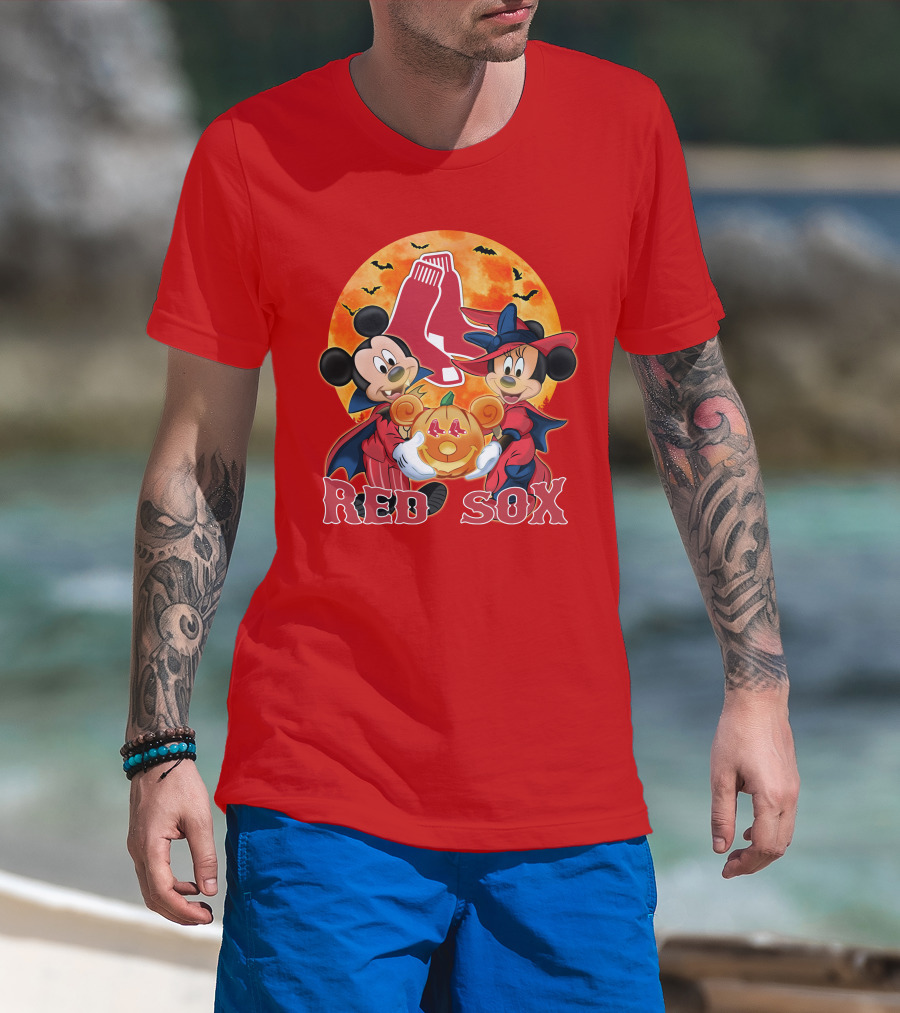 Boston Red Sox Mickey And Minnie Mouse Halloween Pumpkin T-Shirt