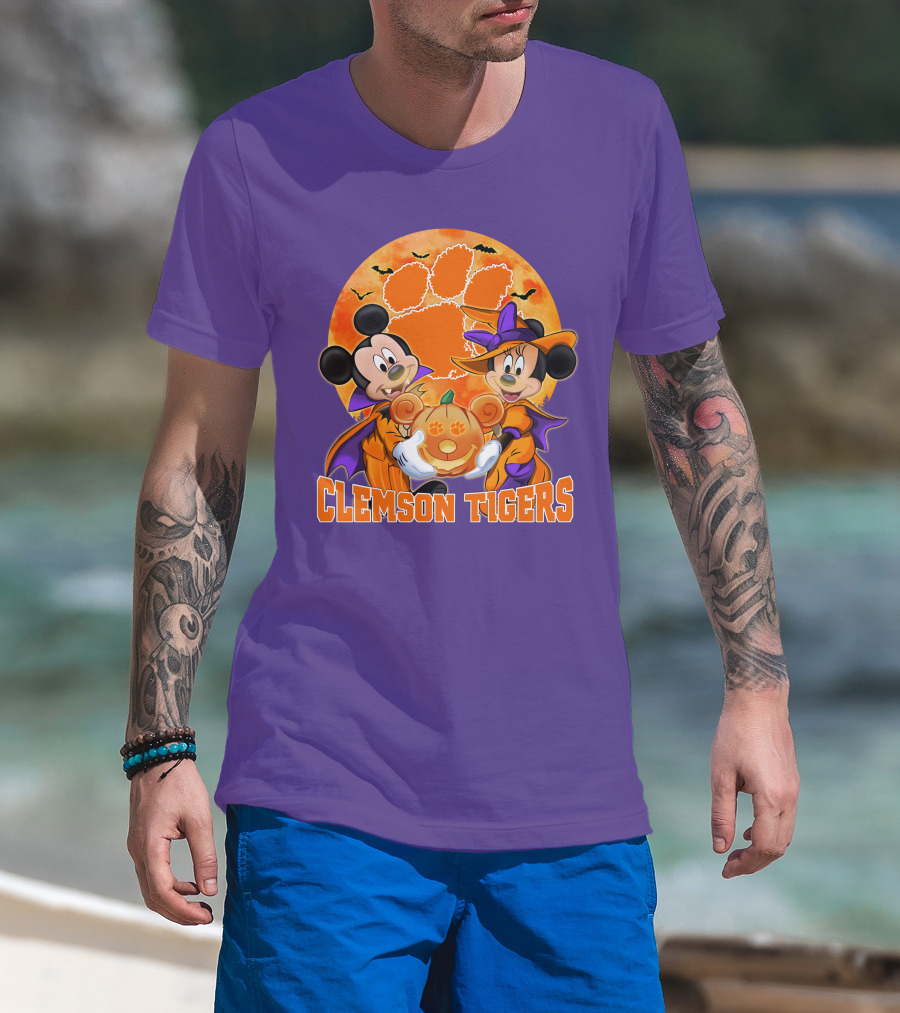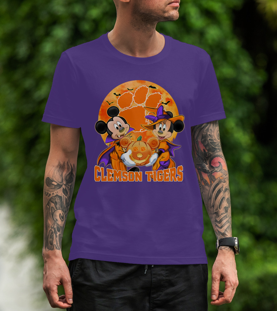 Clemson Tigers Mickey Mouse Minnie Mouse Halloween Pumpkin T-Shirt