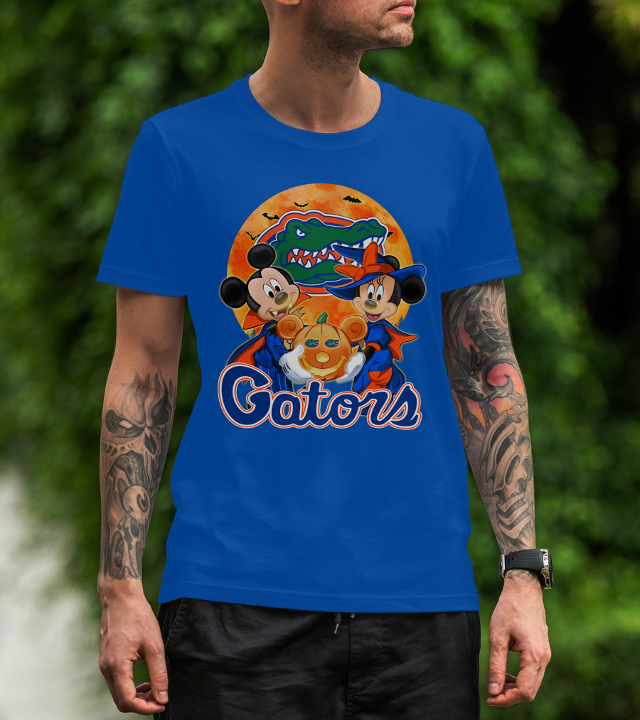 Florida Gators Mickey Mouse And Minnie Mouse Halloween Pumpkin T-Shirt