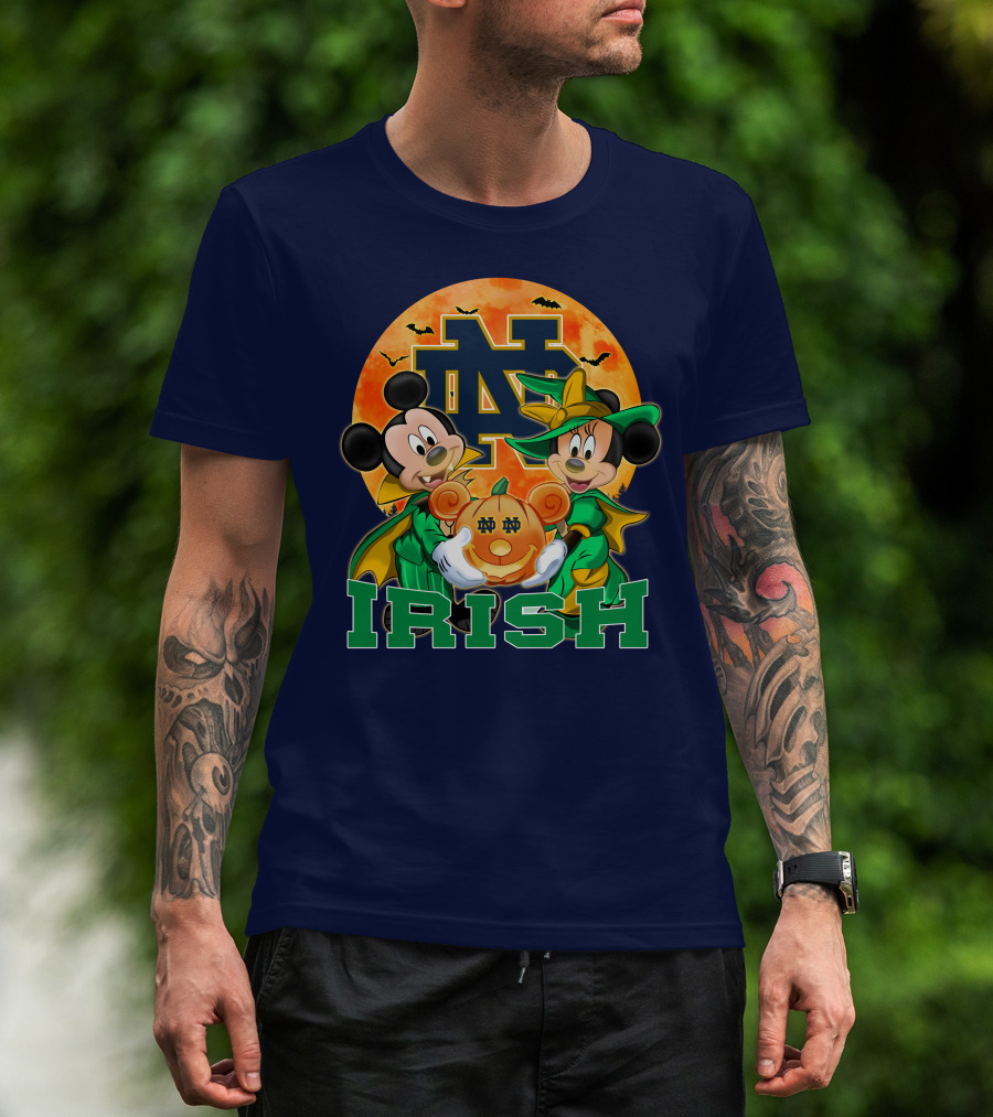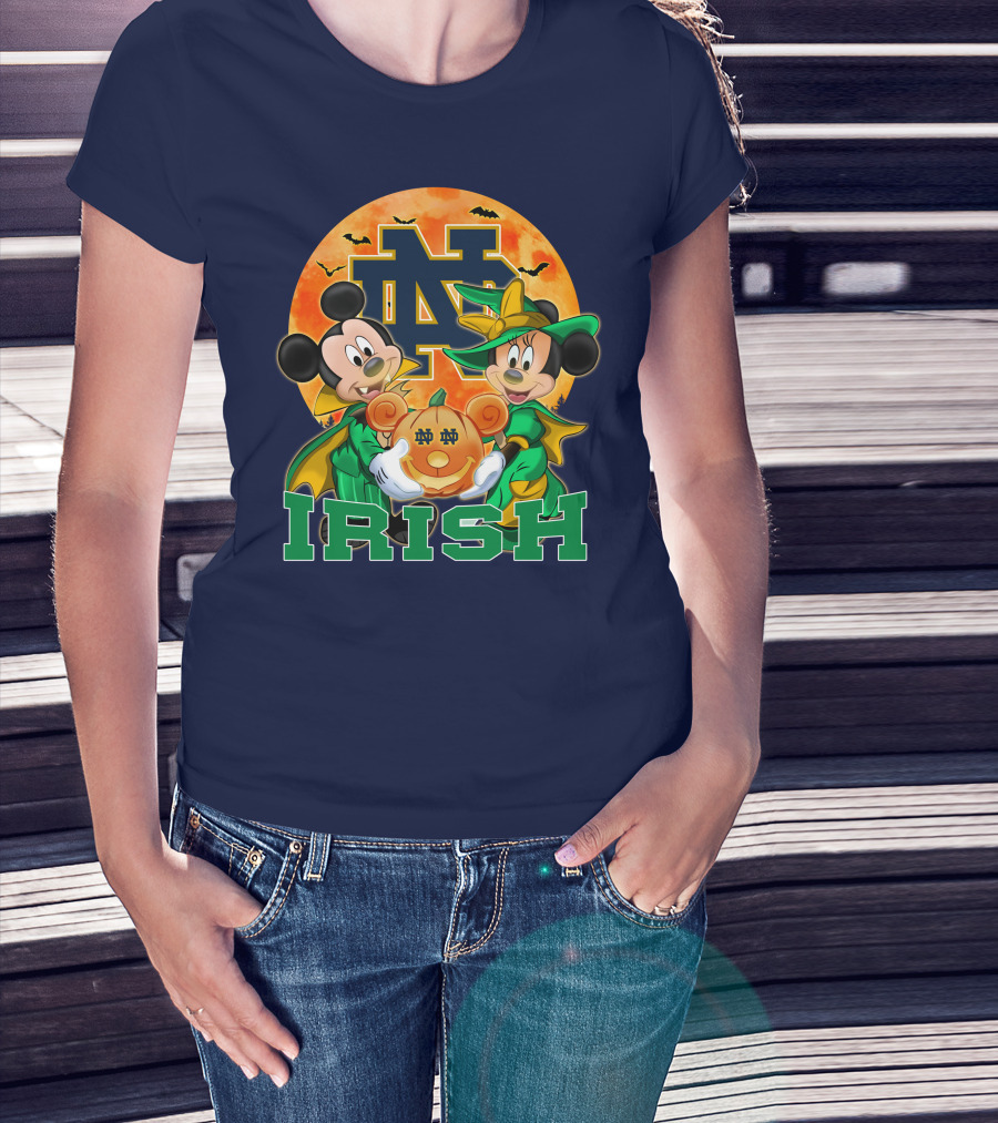 Notre Dame Fighting Irish Mickey Mouse Minnie Mouse Halloween Irish Pumpkin T-Shirt