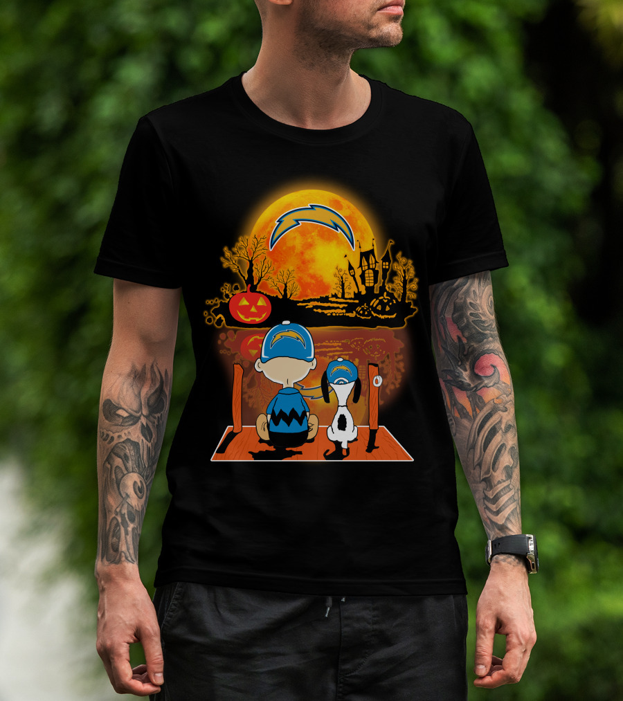 Los Angeles Chargers Charlie Brown Snoopy Pumpkin Moon Halloween Scene T-Shirt