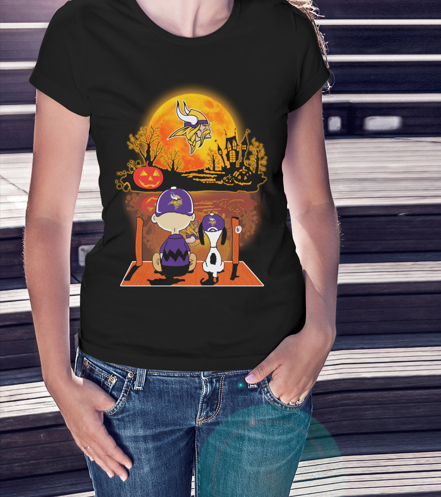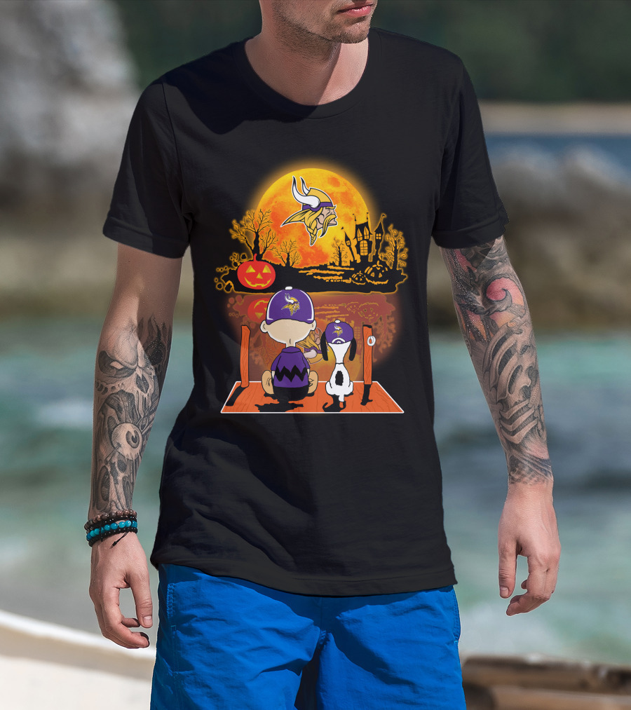 Minnesota Vikings Snoopy And Charlie Brown Halloween Pumpkin Moon T-Shirt