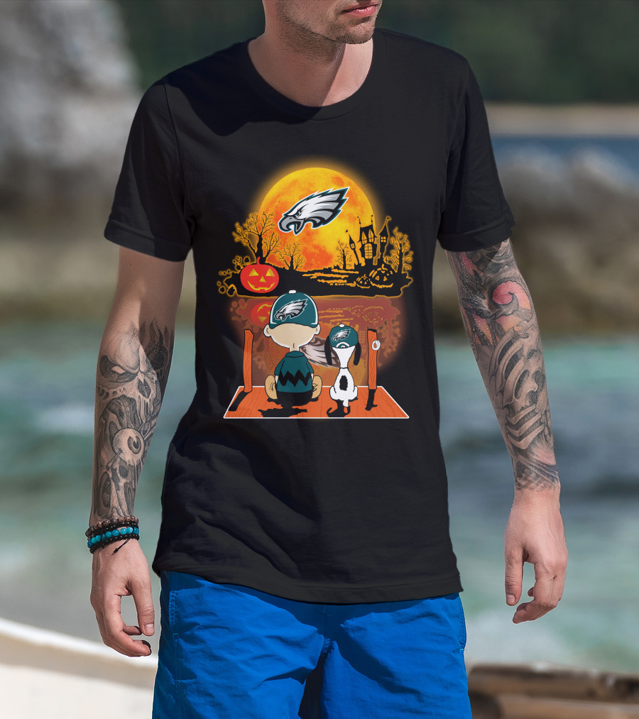 Philadelphia Eagles Snoopy Charlie Brown Halloween Pumpkin Moon T-Shirt