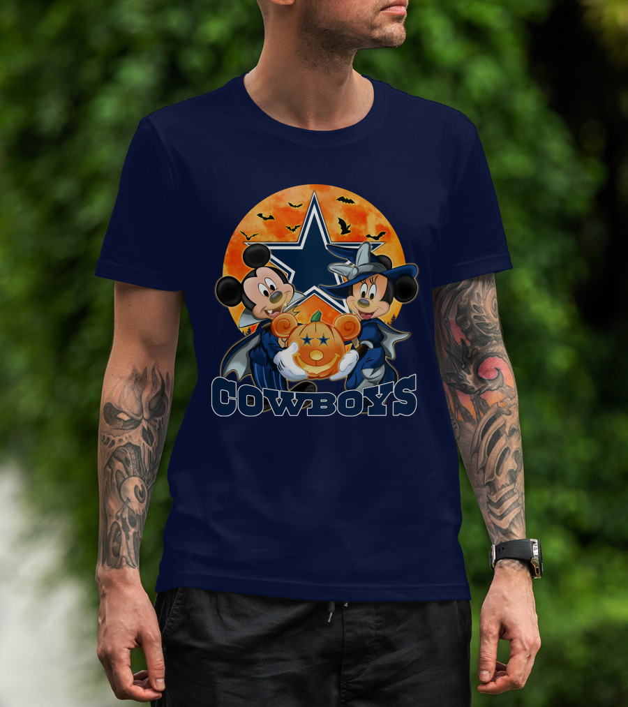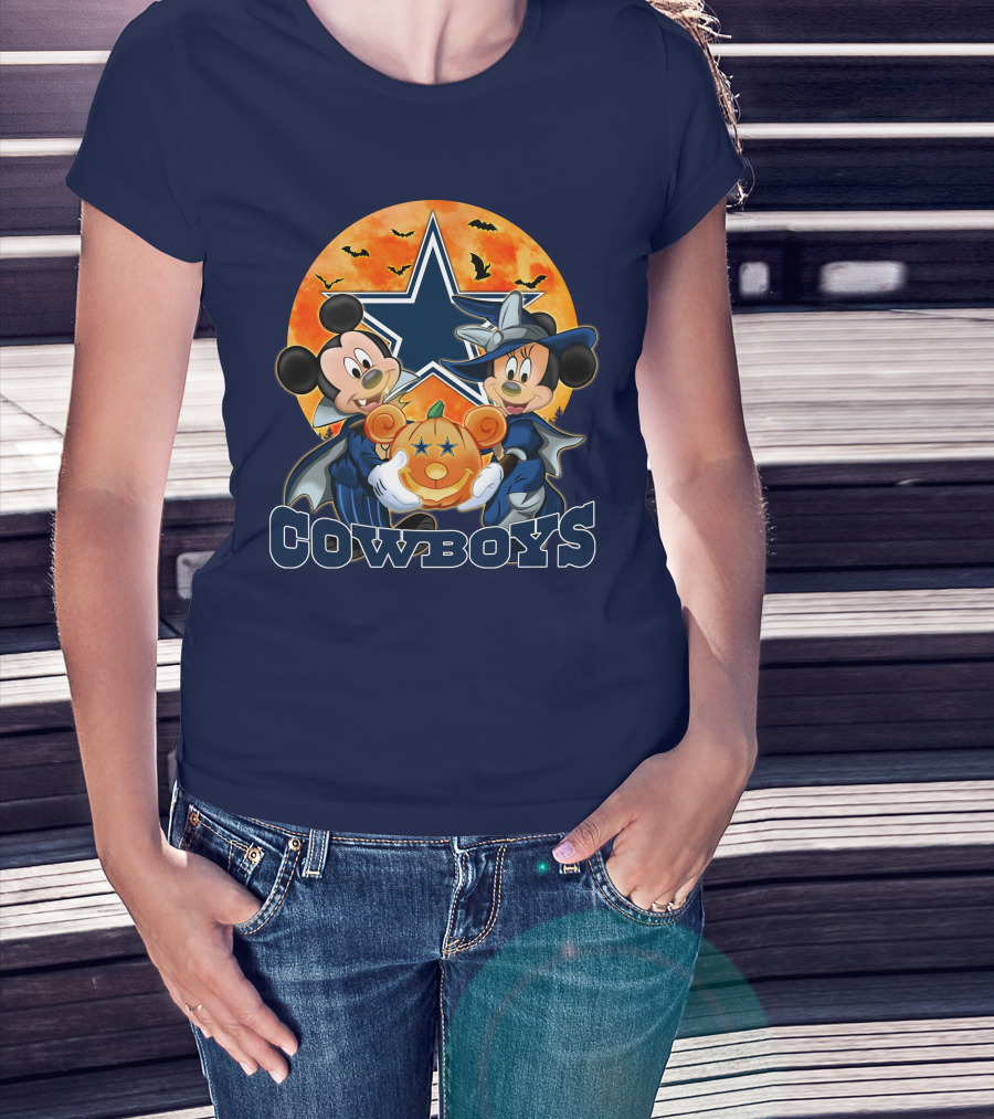 Cowboys Halloween Mickey Mouse And Minnie Mouse With Pumpkin Dallas T-Shirt
