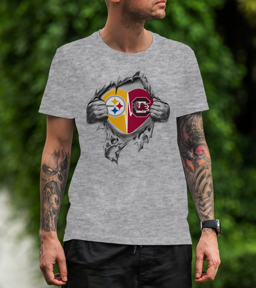 Steelers South Carolina Gamecocks Heart Logo Mashup T-Shirt