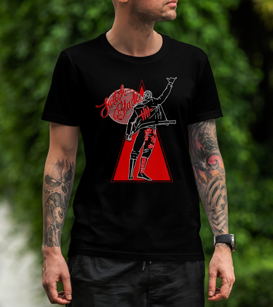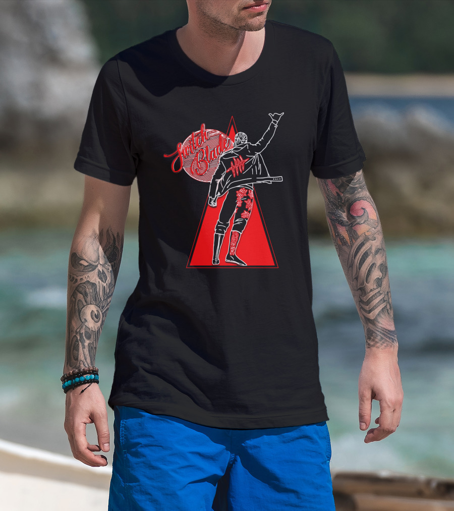 Switchblade Jay White Triangle Back Pose T-Shirt