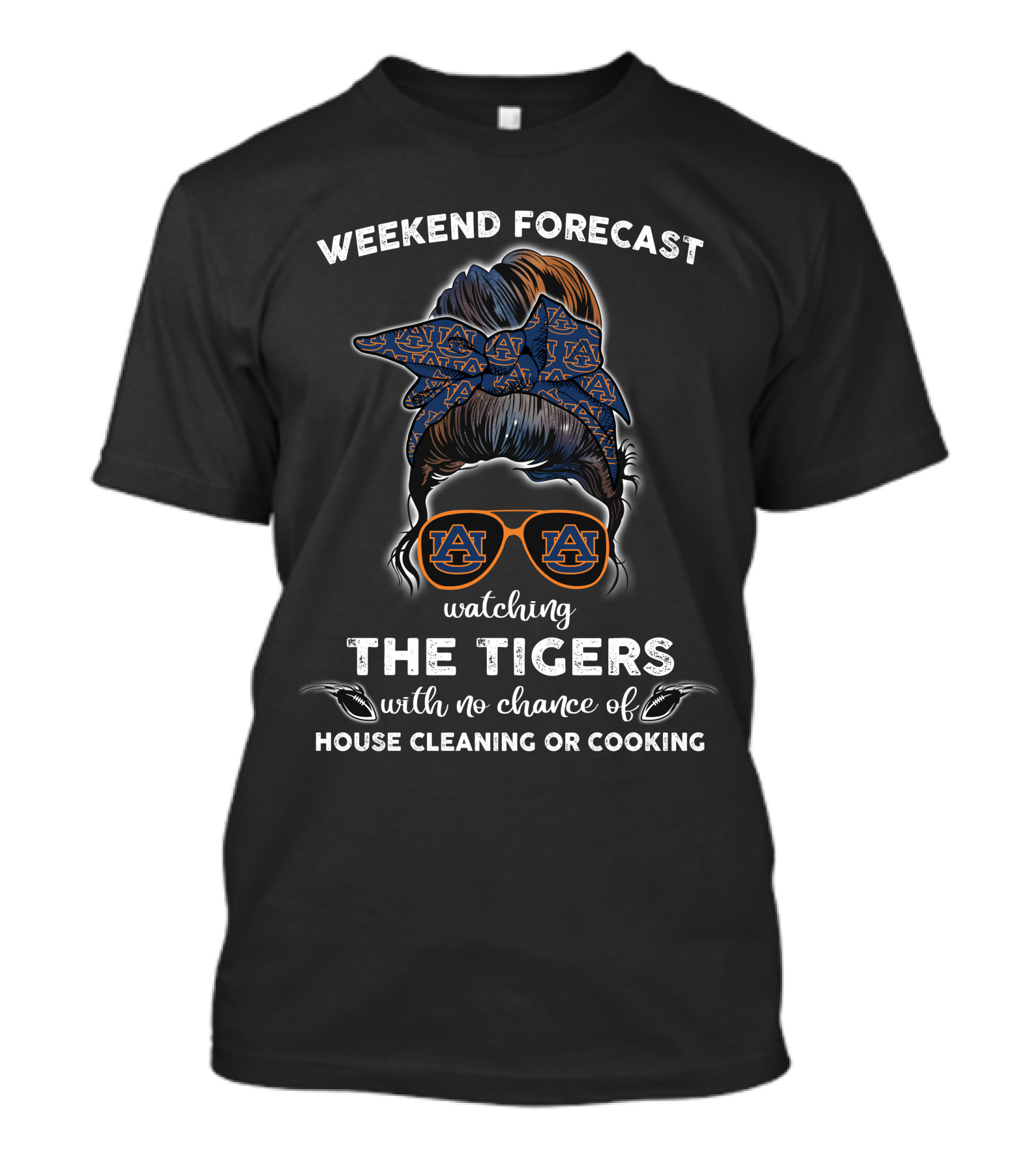 The WEEKEND FORECAST WATCHING THE TIGERS WITH NO CHANCE OF HOUSE CLEANING OR COOKING T-shirt is designed for everyday wear and a consistent fit. Fabric is pre-shrunk ring-spun cotton with durable stitching. See the size chart below for exact measurements.