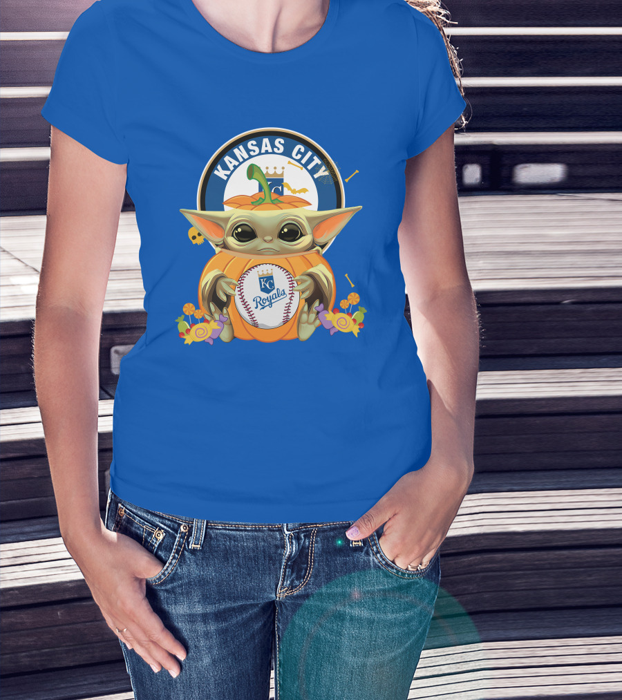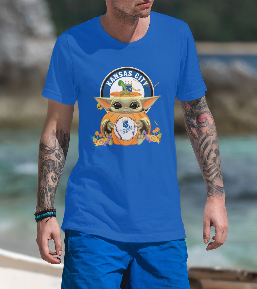 Halloween Pumpkin Baby Yoda Hug KC Royals Baseball T-Shirt