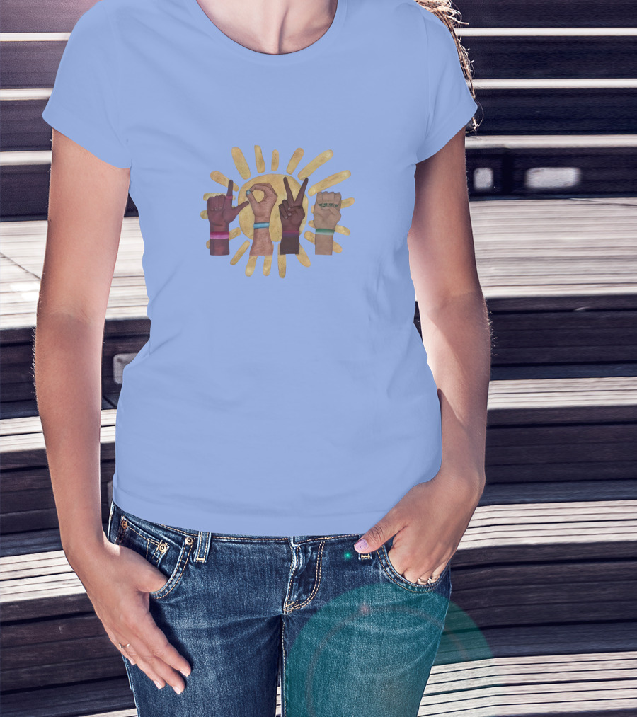 The Cardinal Glennon Thankful Threads Sunburst Hand Signs T-shirt is designed for everyday wear and a consistent fit. Fabric is pre-shrunk ring-spun cotton with durable stitching. See the size chart below for exact measurements.