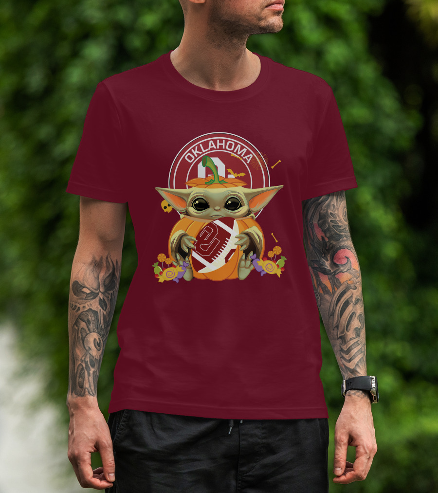 Halloween Pumpkin Baby Yoda Hug Oklahoma Sooners Football T-Shirt