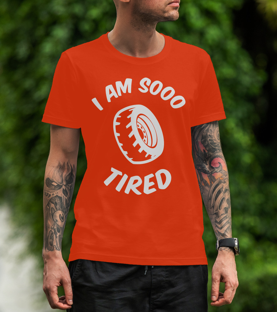 The I Am Sooo Tired Tire T-shirt is designed for everyday wear and a consistent fit. Fabric is pre-shrunk ring-spun cotton with durable stitching. See the size chart below for exact measurements.
