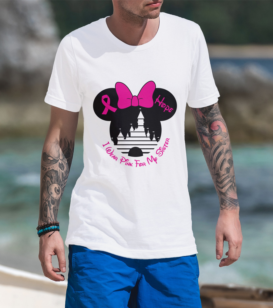 I Wear Pink For My Sister Hope Ribbon Castle Minnie Mouse Bow T-Shirt