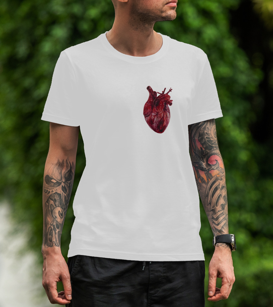 The Anatomical Realistic Heart T-shirt is designed for everyday wear and a consistent fit. Fabric is pre-shrunk ring-spun cotton with durable stitching. See the size chart below for exact measurements.