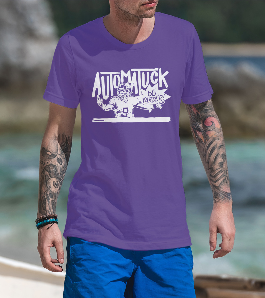 Automatuck 66 Yarder Football Player Purple Background T-Shirt