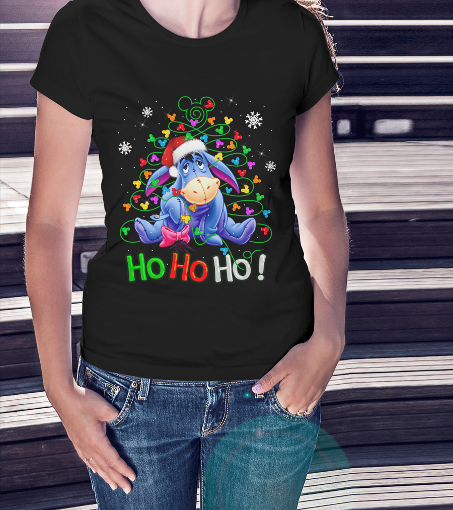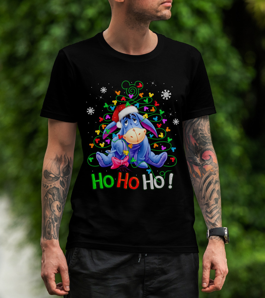 Eeyore Ho Ho Ho Christmas Tree Santa Hat Snowflakes Holiday Disney T-Shirt